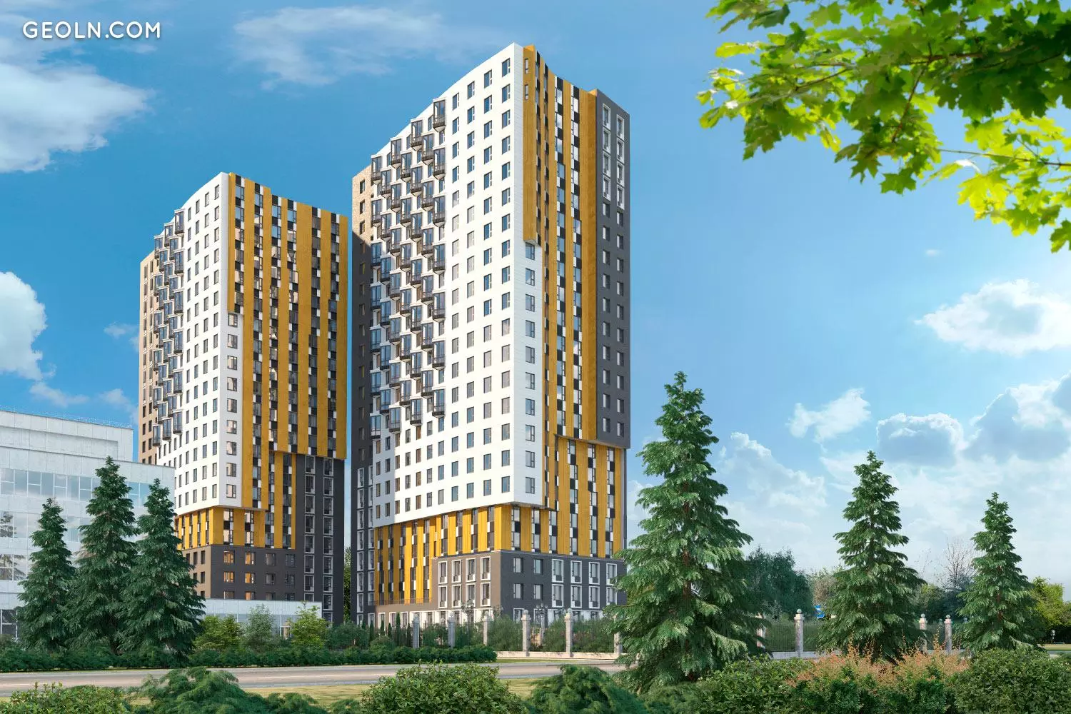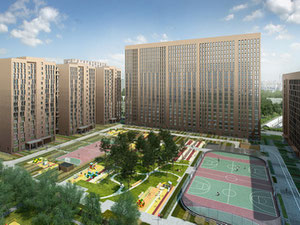 院子里有游乐场和运动场,一个网球场,自行车道和步行道。建立了公园区,安装了小型建筑模板,种植了观赏树木,灌木和草坪。一楼是商业场所:商店,干洗店,咖啡厅,儿童中心等。