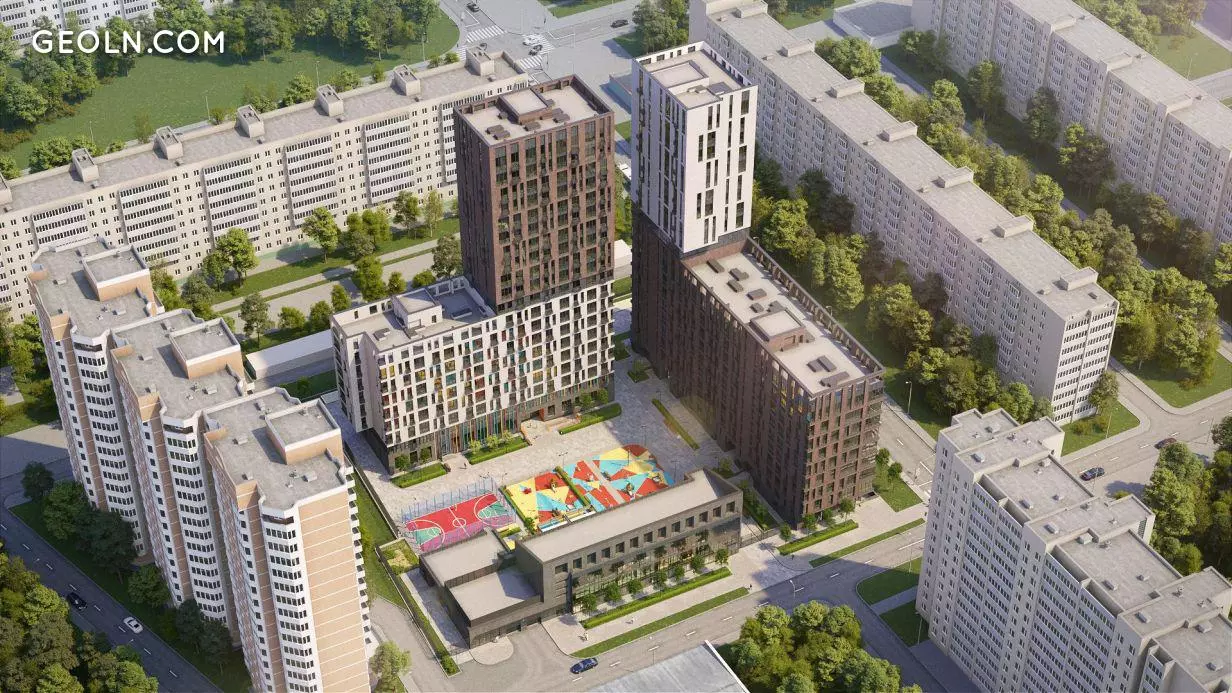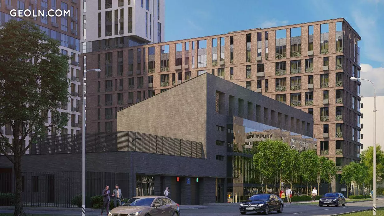 院子禁止汽车通行,客人停车位位于从街道一侧沿建筑群的周边。正在使用电梯建造一个公共地下停车场。在综合楼的寄望处,计划建造一个小型幼儿园,以及办公室和各式各样的商店,并在街上有自己的入口。院子里提供运动场和儿童游乐场。