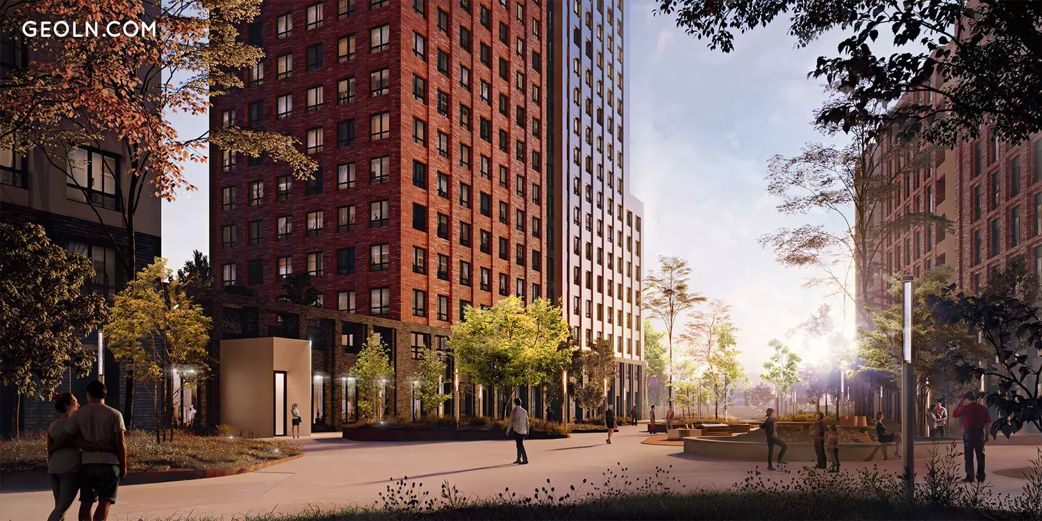 该建筑群的面积为32公顷。它提供了一个舒适的生活环境。这些建筑物应该沿着路堤分几行放置。应当指出的是,有可能在路堤附近第一线购买低层建筑的公寓,而最高的新建筑则在靠近道路的最后一线建造。建筑物的位置也会影响“ Beregovoy”住宅区的房价。