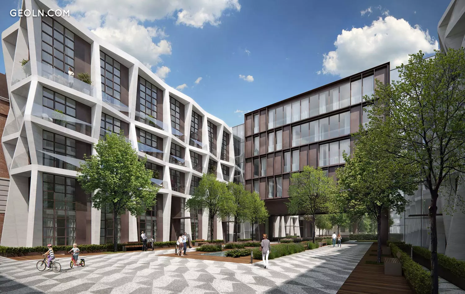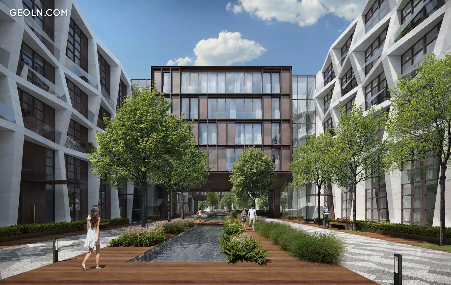 在街区附近铺设车道和道路,配备树木和人造水库的休闲区,正在建设儿童游乐区,并安装街道照明设备。