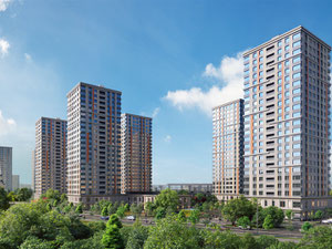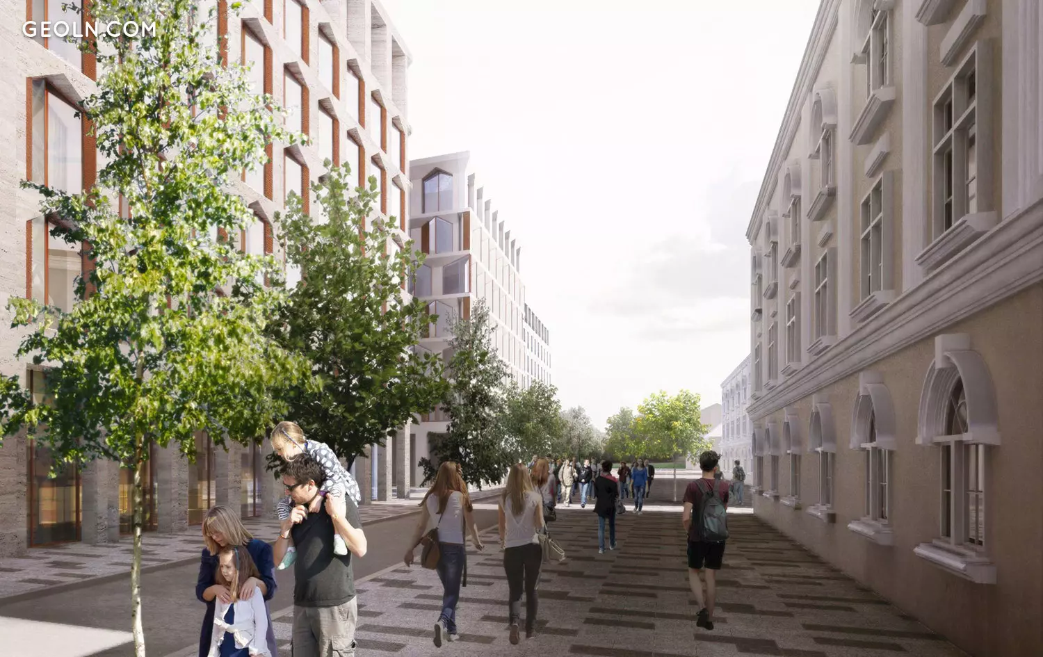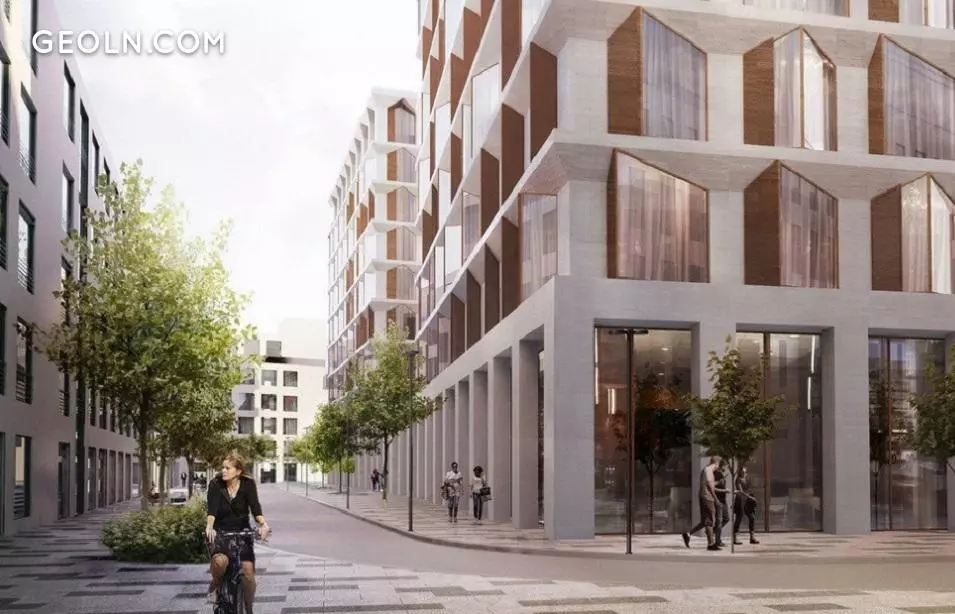 对建筑工地进行景观美化,植树。正在建设一个客用停车场;地下停车场的数量将约为住宅公寓数量的两倍。区域安装了路灯设备,铺设了道路和车道。