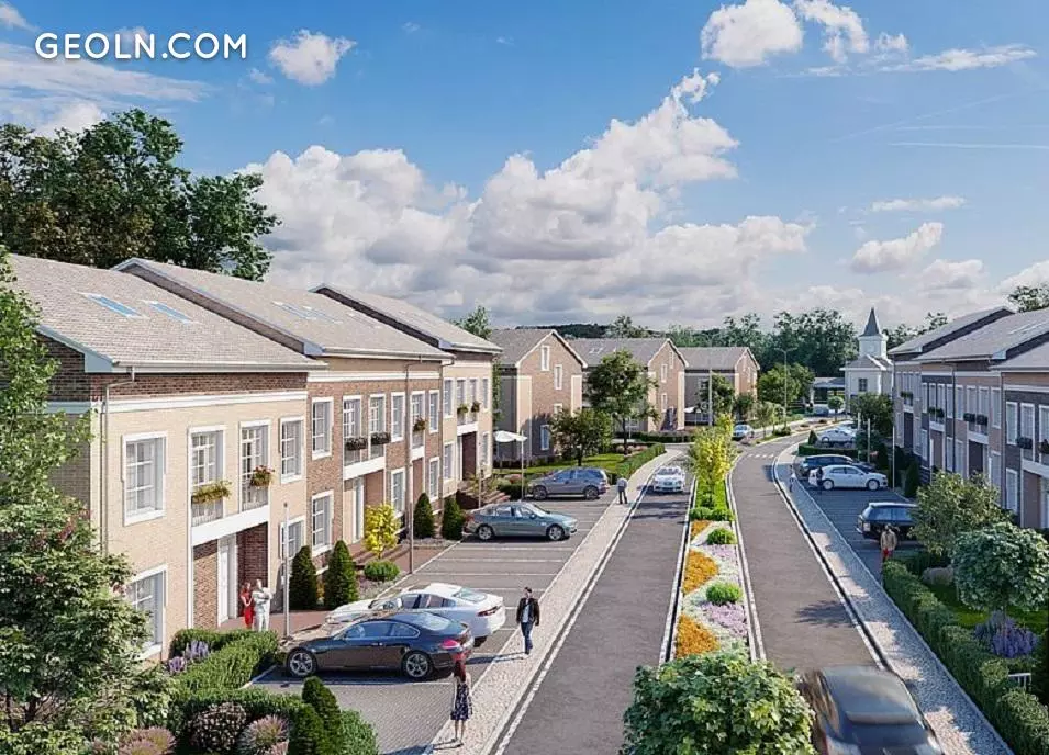 大型平房镇由588栋房屋组成,其中有三层楼的联排别墅。房屋的上层是有双重斜坡的形式,屋顶窗特别刻在屋顶上。