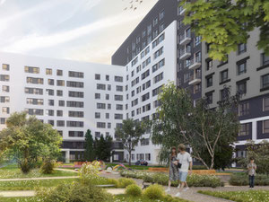 院子的领土将被人行道,汽车入口和专用设备美化。将配备儿童游乐场,运动场,休闲区,将创建天然草坪,将安装小型建筑形式。对于车主,有一个三层地下停车场,可容纳330个停车位,不包括客人。
