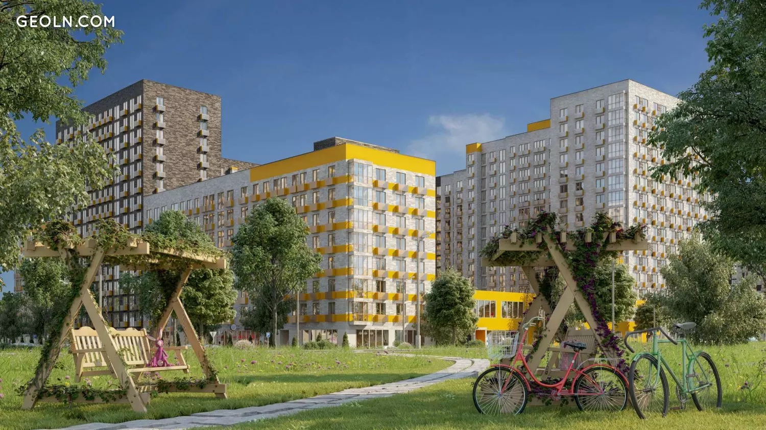 新建筑由五座舒适级别的整体式框架房屋组成,高度为2至15层。这些建筑物是使用现代节能技术建造的,这些技术可降低公用事业成本。在施工过程中,采取了许多措施来改善建筑物的运行特性,并使用了环保材料。