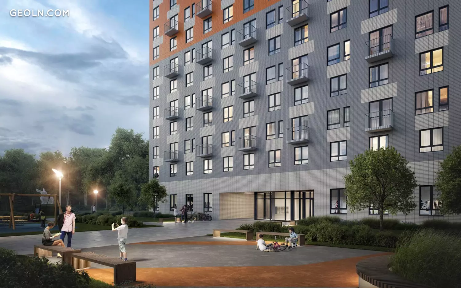 正在根据开发商的计划开发房屋用地。体育馆和儿童游乐场将出现在这里。车主将可以使用地面停车位564个车位,或者将其车辆留在宾客停车位。