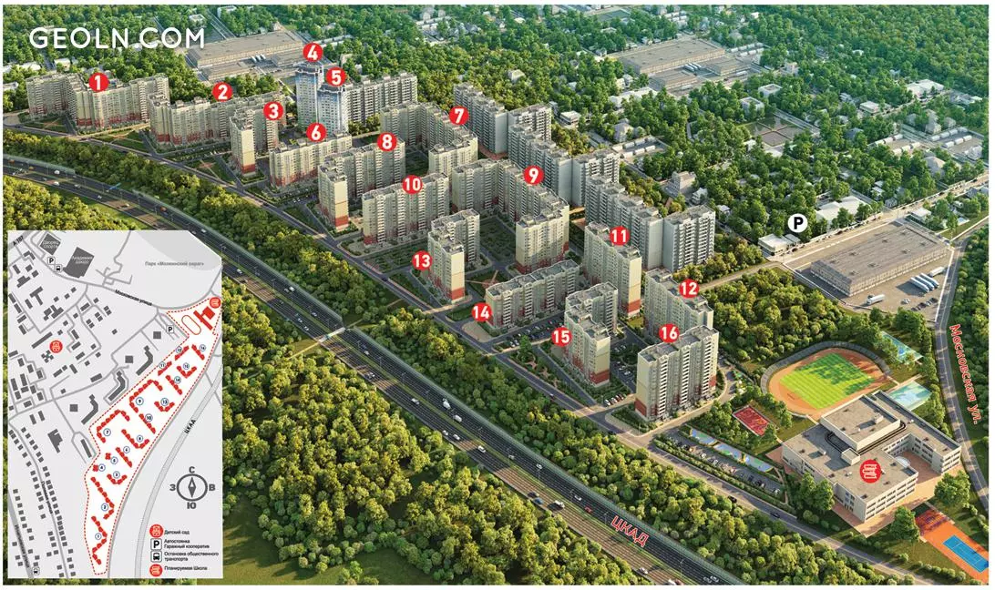 兹韦尼哥罗德的微区“ Vostochny-2.3”包括16层具有基础设施(停车场,幼儿园,学校)的多层建筑。开发商计划的美化环境还包括绿化工程。