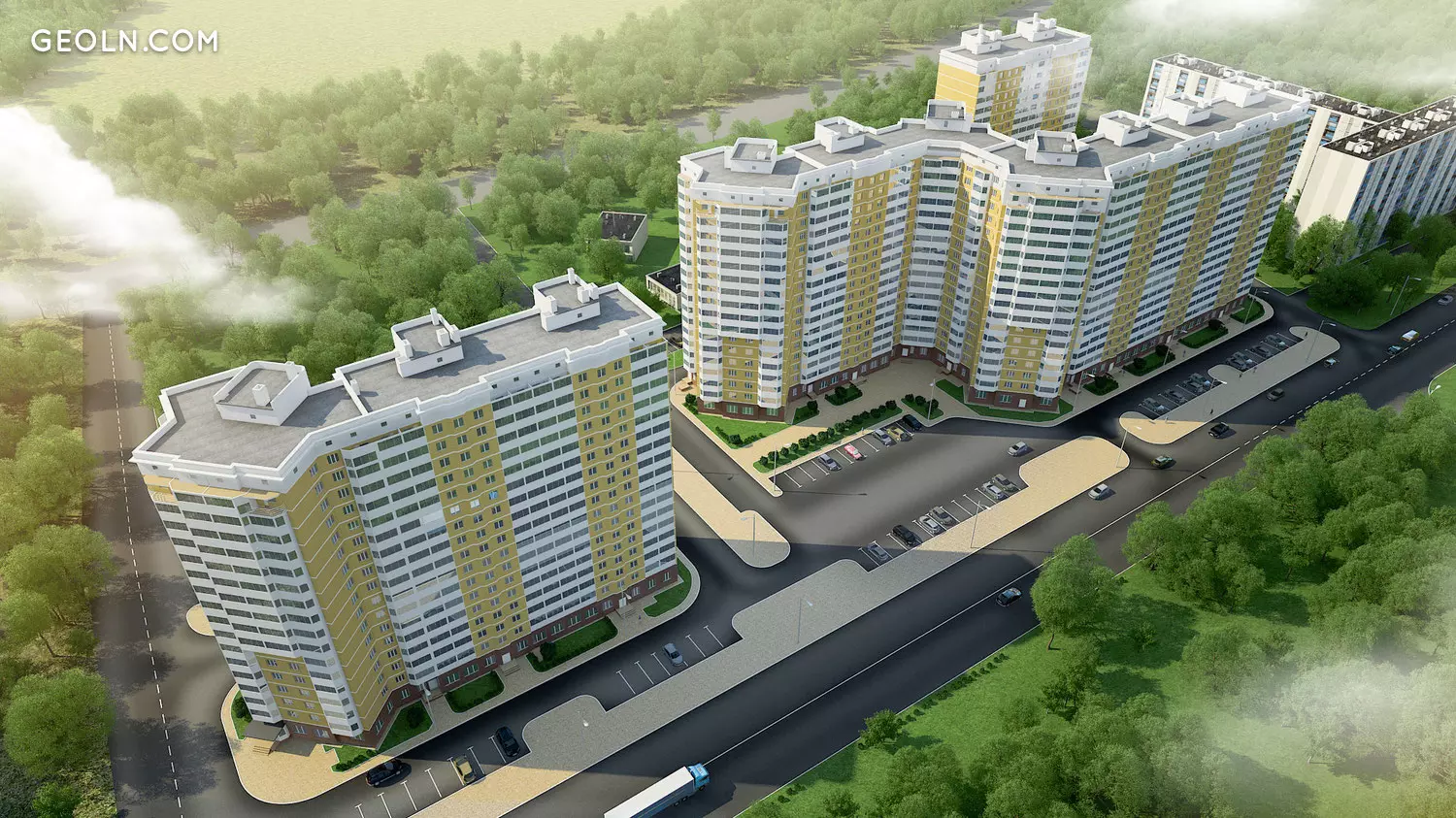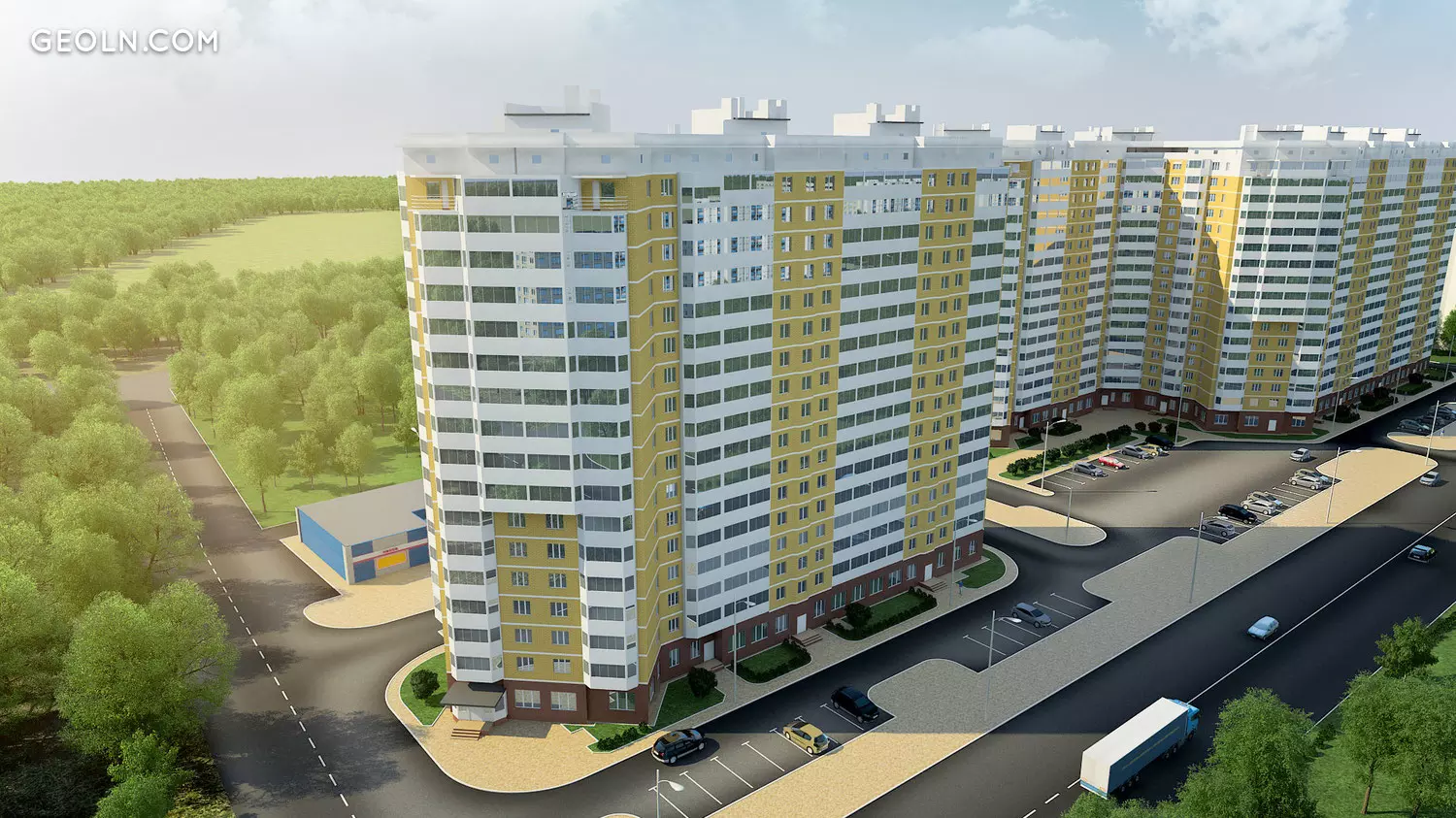该住宅区包括3栋房屋,其中一栋已投入使用,甚至部分人烟。每栋建筑都有17层,设有不同数量的公寓,入口和区域。公寓的成本相对较低,因为房屋属于经济舱。