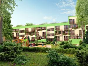 房屋附近的区域将被完全美化。操场上有825辆车的停车位。计划建设幼儿园和学校。在新大楼附近有工作学校和幼儿园。由于房屋是在住宅区内建造的,因此附近有商店,银行分支机构和诊所。
