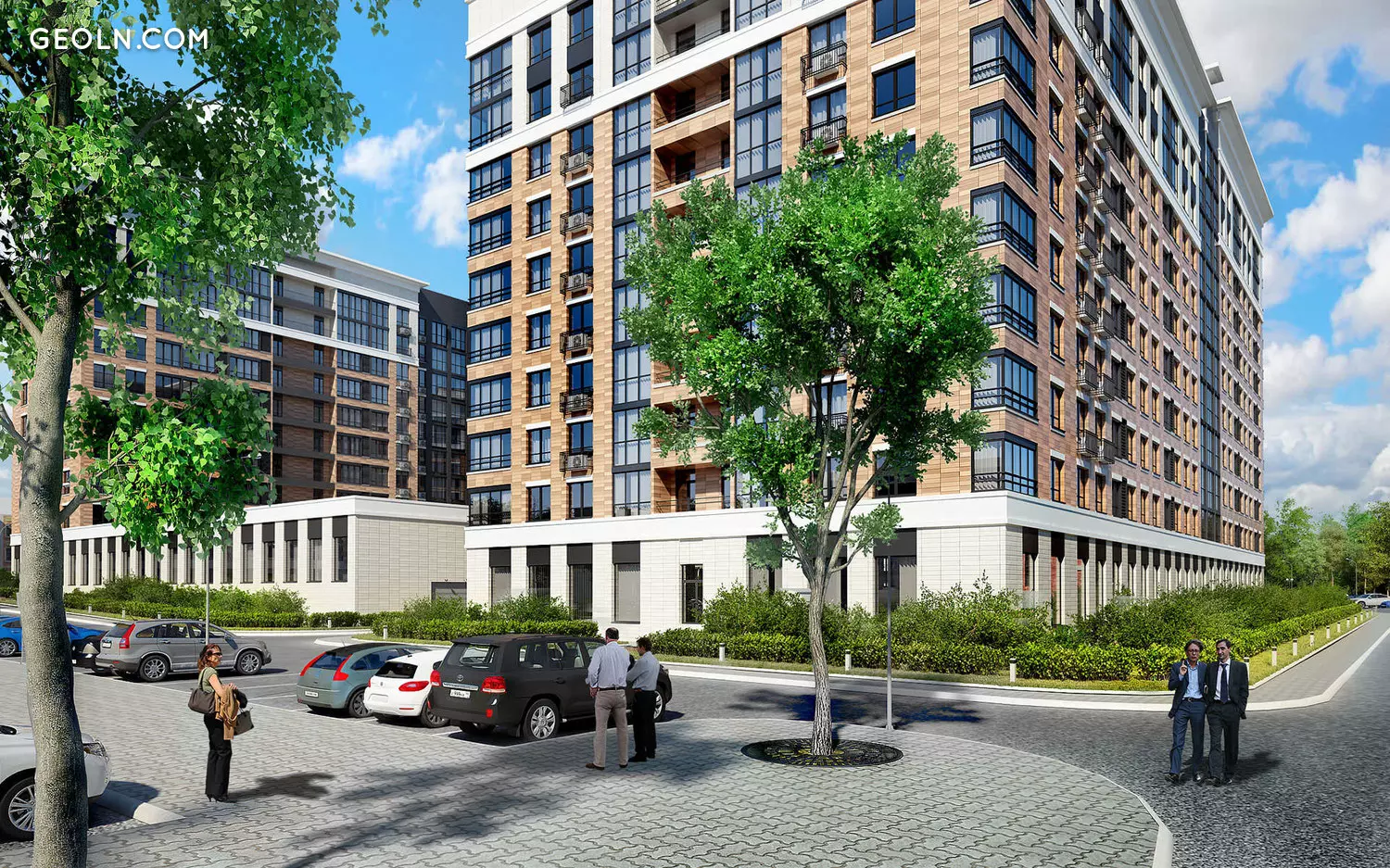 在当地,建筑计划提供了一般的美化环境和美化环境,铺设坚硬表面的车道和人行道。旅馆将配备客用停车场,正在组织带长椅和垃圾箱的休闲区。正在建造运动场以及用于安装垃圾容器的公用设施。