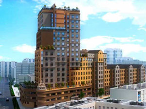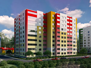 多层住宅建筑是两部分的十层充气建筑,共有140套公寓。