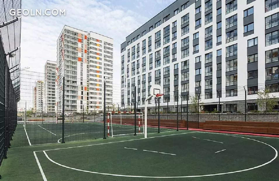 汽车停车场位于围栏区域之外,这大大增加了在院子里玩耍的孩子的安全性。有运动器材的运动场。也有篮球场和五人制足球场。计划在发展中的操场上装备涂有橡胶的涂料,这是一个walking狗的地方,那里有训练宠物的障碍。