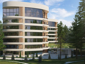 一楼的第二栋大楼包含四个商业场所,面积从74到131平方公里。米。房屋内将安排礼宾服务,庭院,电梯和入口处将安装摄像机。改善庭院,将容纳儿童和运动场,运动器材,滑板公园。