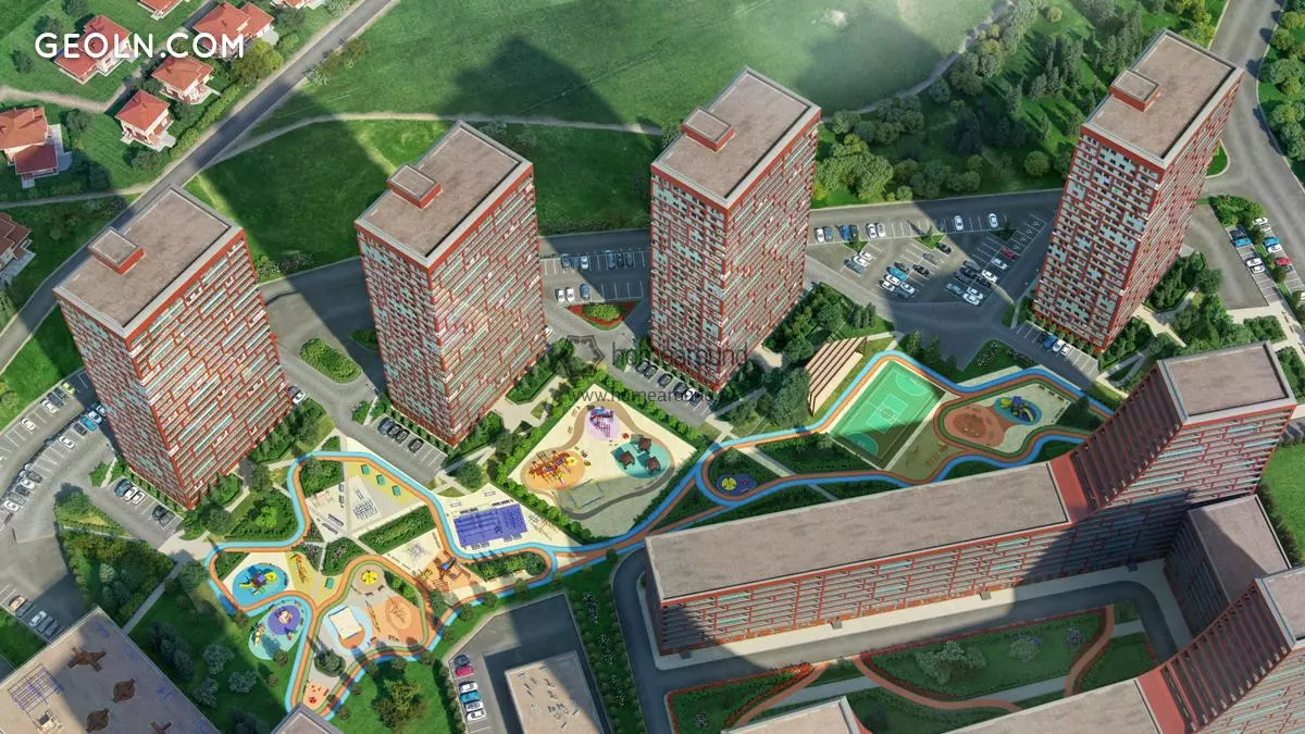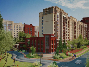 该建筑群是由二十六个整体式框架房屋组成的整个街区。建设分四个阶段进行。第一座于2016年第二季度投入使用,第二座于同年第四季度完成,第三座于2017年中期完成,第四座于2017年底完成。