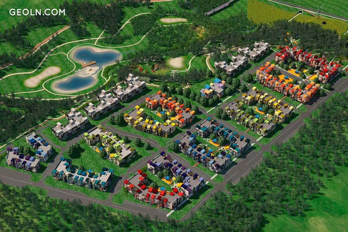 新建筑是一个由19所房屋组成的住宅区,分多个阶段建造。建筑物采用工业立体风格设计,建筑物的高度为四层。