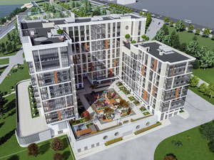 该综合大楼设有一室公寓以及面积为32-112平方米的1-2-3间卧室的公寓。可以在底楼购买办公空间。价格包括抹灰的墙壁和由隔音材料制成的地面熨平板,金属门以及所有公用事业的安装。