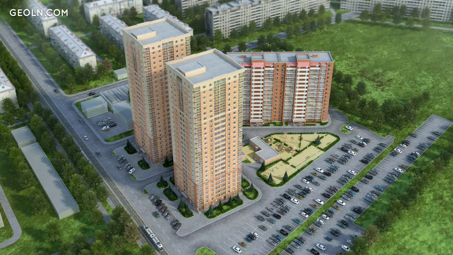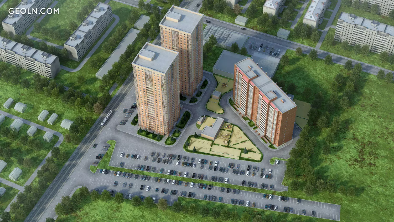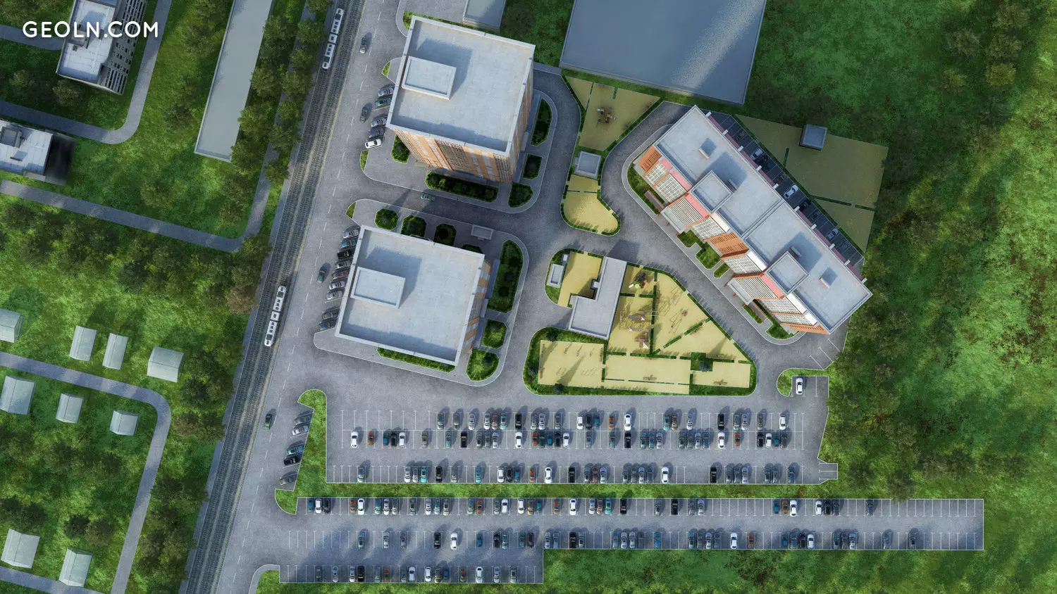 该开发计划规定要铺设坚硬表面的车道和人行道。一个大客人和地下停车场正在安排中。配备了儿童游乐场,休闲区,并进行了环境美化和美化。
