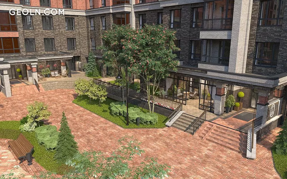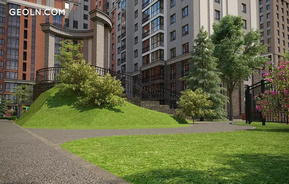План застройки предусматривает благоустройство территории, в основе которого устройство пешеходного прогулочного бульвара с водоемами, зелеными насаждениями и скамейками для отдыха жителей комплекса. Оборудуются подземные паркинги и наземные парковочные места для автомобилей и велосипедов. Сооружаются детские игровые площадки и хозяйственные площадки для размещения мусоросборных контейнеров, устраиваются проезды и пешеходные дорожки.