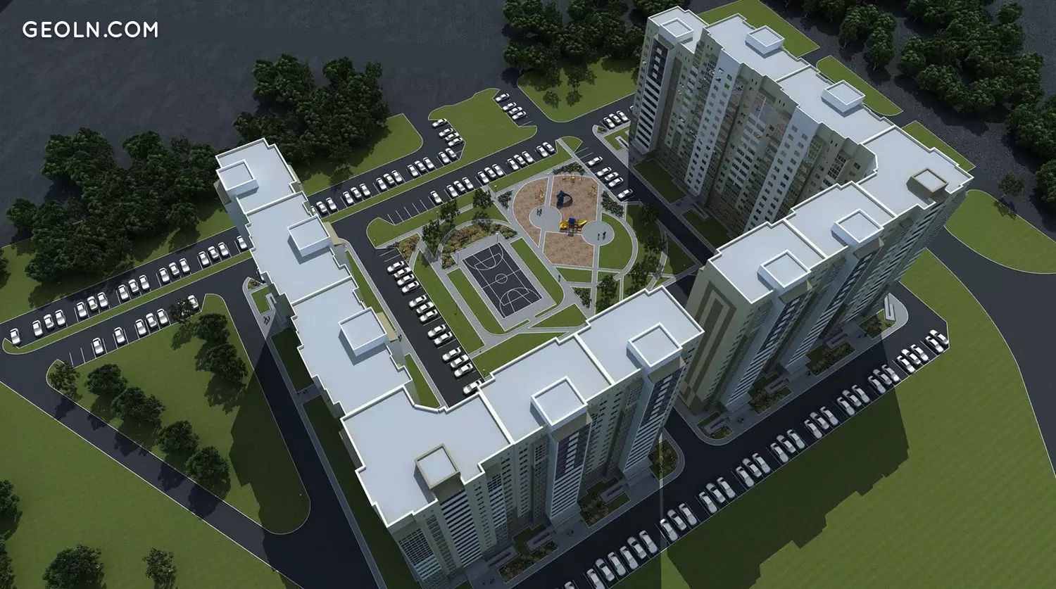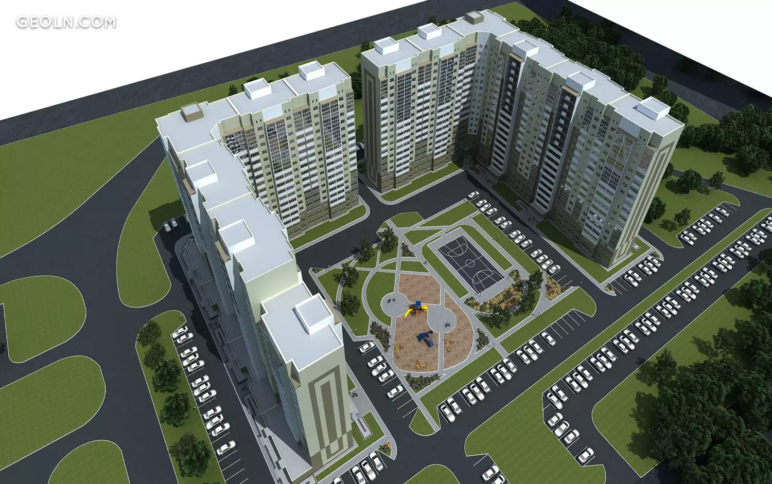 新建筑由六座高十七层的房屋组成。在施工过程中,采用了面板技术。建筑物建造中使用的节能技术以及经过深思熟虑的公寓布局,可以以最低的维护成本实现体面的舒适度。