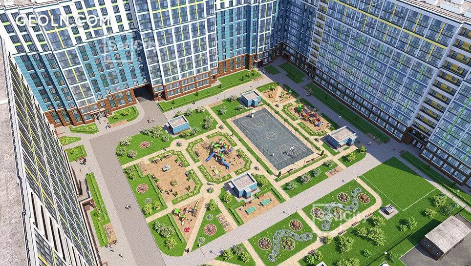 “ Oblaka na Lesnaya”住宅区的庭院没有汽车。相邻的区域分为几个娱乐场所,运动区和安静休息的地方。现代游乐场设有安全的地面。运动场配备了现代化的健身器材。园林绿化项目包括用于步行,舒适照明和装饰性园林绿化的铺装路径。