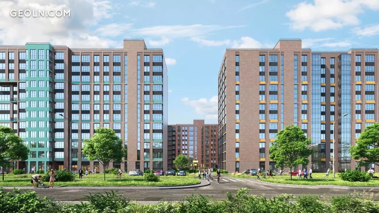 住宅区“全景公园Sosnovka”由砖砌整体建筑和瓷器外墙组成。凉廊上设有反射玻璃。