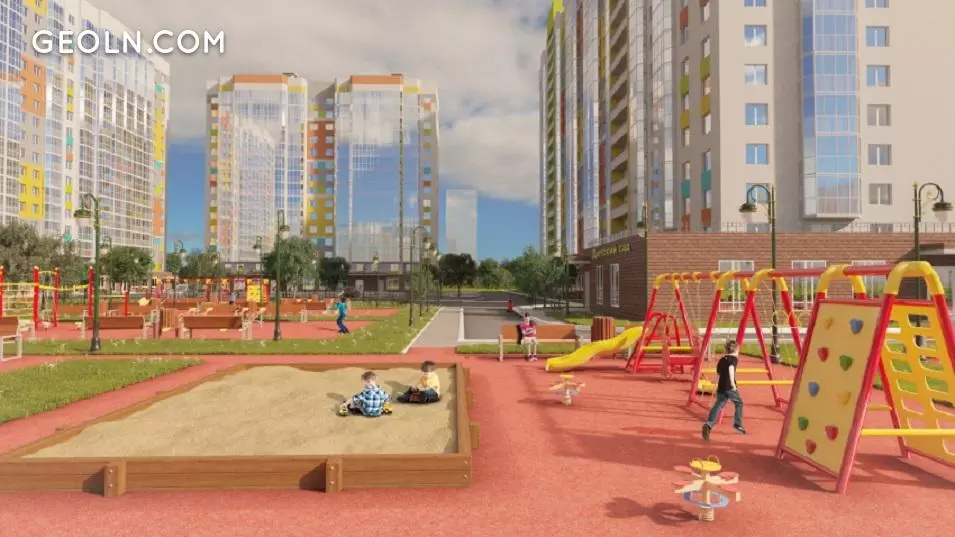 复杂的领土将被完全美化。开发人员将为特殊的游乐区配备滑梯,秋千和沙箱。操场上将覆盖有碎橡胶。这种方法将使运动更安全。