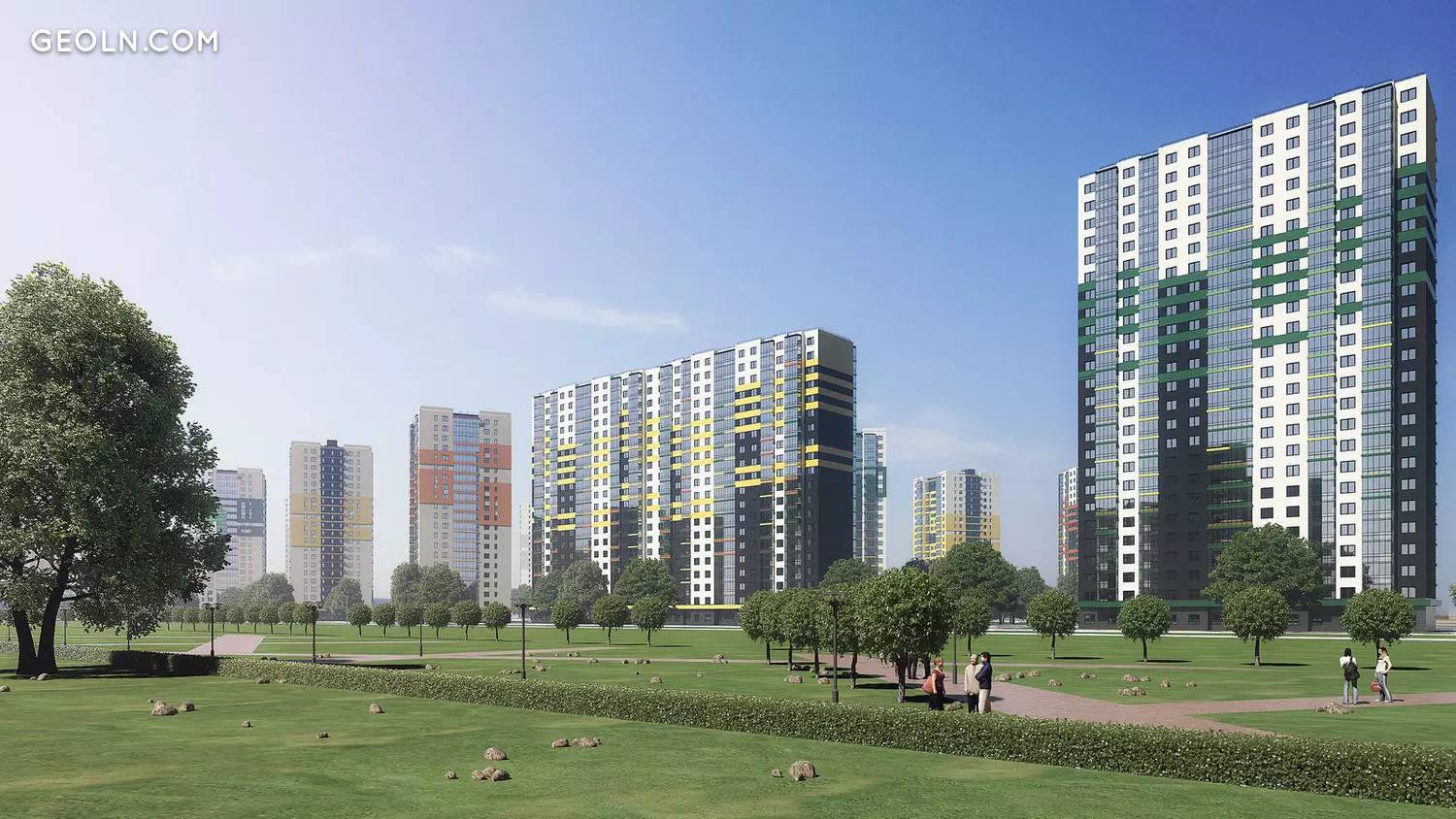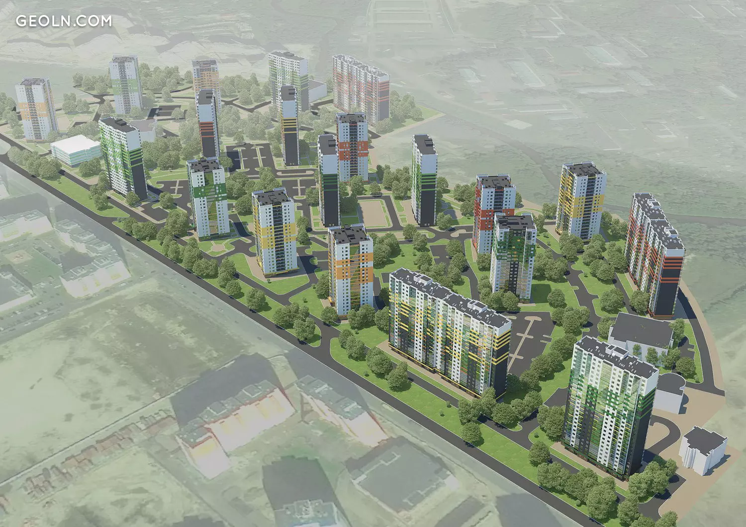 Территория озеленяется, высаживаются деревья, декоративные кустарники и травяные газоны. Согласно плану застройки устраиваются проезды, прокладываются пешеходные дорожки, покрытые тротуарной плиткой. Оборудуются спортивные площадки, хорошо оснащенные зоны отдыха и площадки для детей. Сооружается большой надземный паркинг.