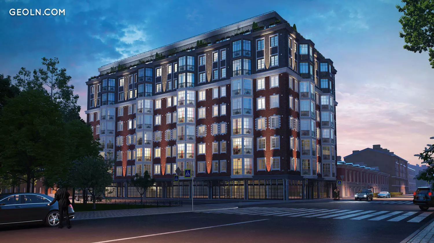 该房屋可靠的钢筋混凝土框架隐藏在典型的圣彼得堡建筑的外观下,非常适合周围的建筑群。用砖砌成的墙壁装饰有高雅的装饰元素,窗户用木框节能双层玻璃窗上釉,与其余部分完美融合。