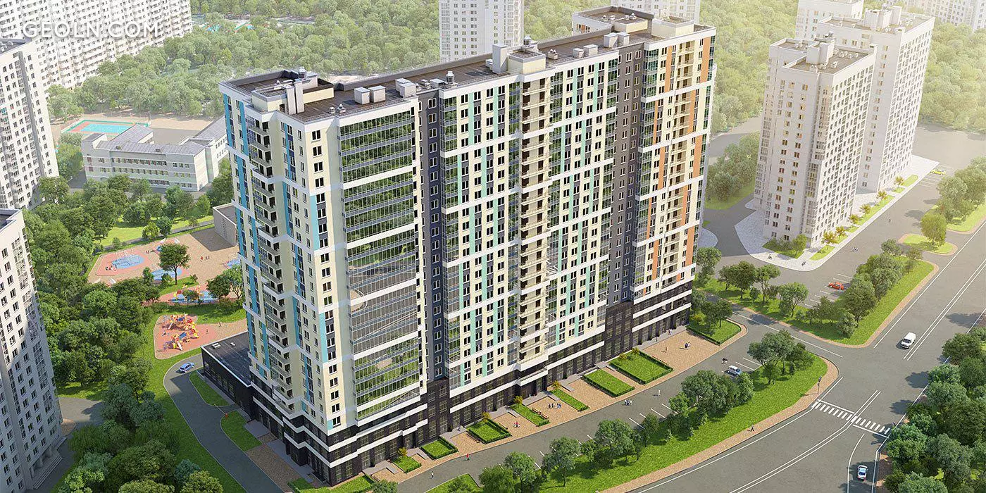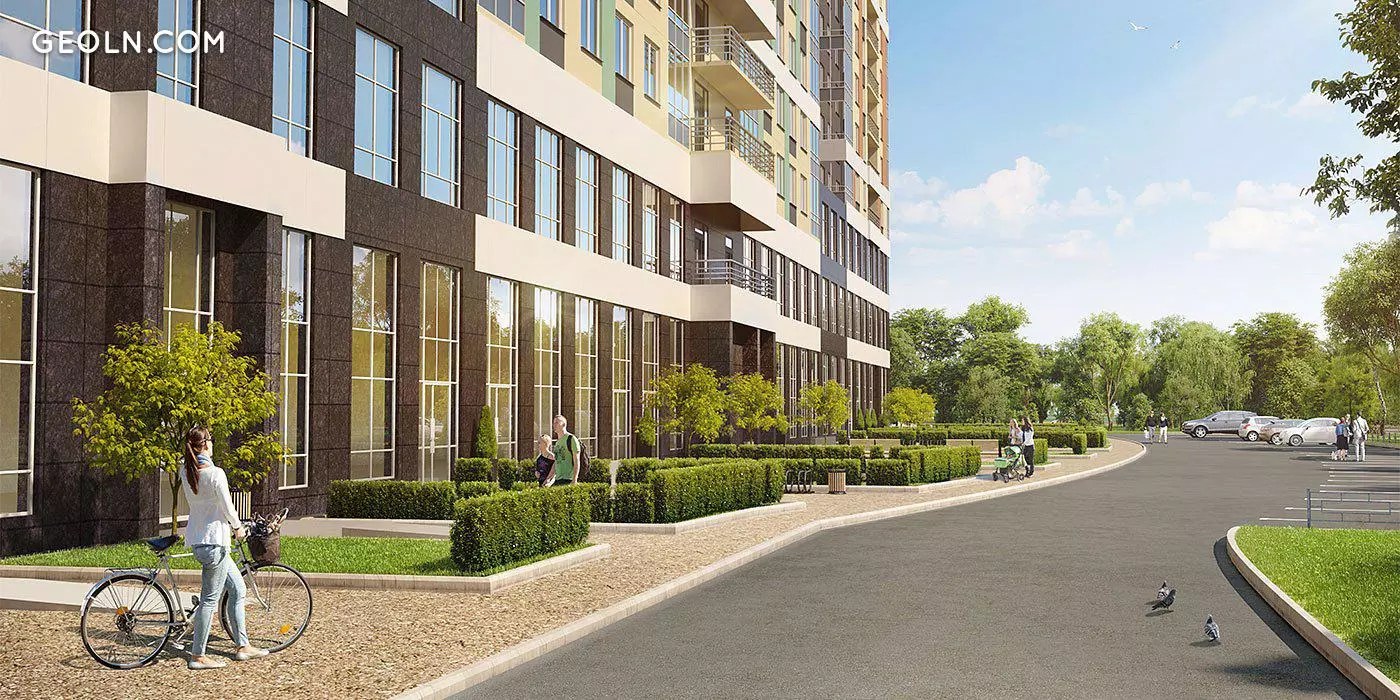 “ Zhili-Byli”是一个住宅区,其建筑外观与公寓建筑设计中使用的现代解决方案相对应。选定的外墙材料和调色板创建了和谐的组成模块。