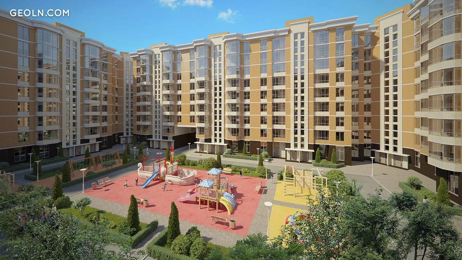 所有车道以及人行道均按照建筑计划布置。此外,该领土上还配备了带有现代人造草皮的游乐场,并分配了运动场所。娱乐场所正在组织中。种植树木和观赏灌木,并安装户外照明设备。有一个放置垃圾容器的地方。