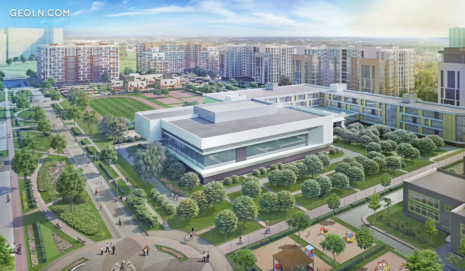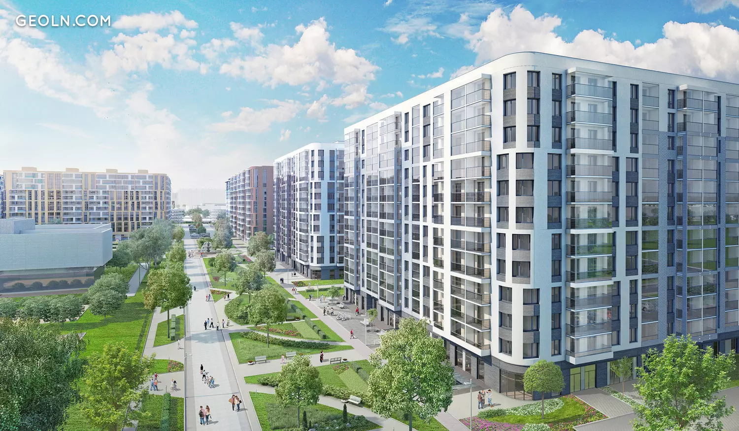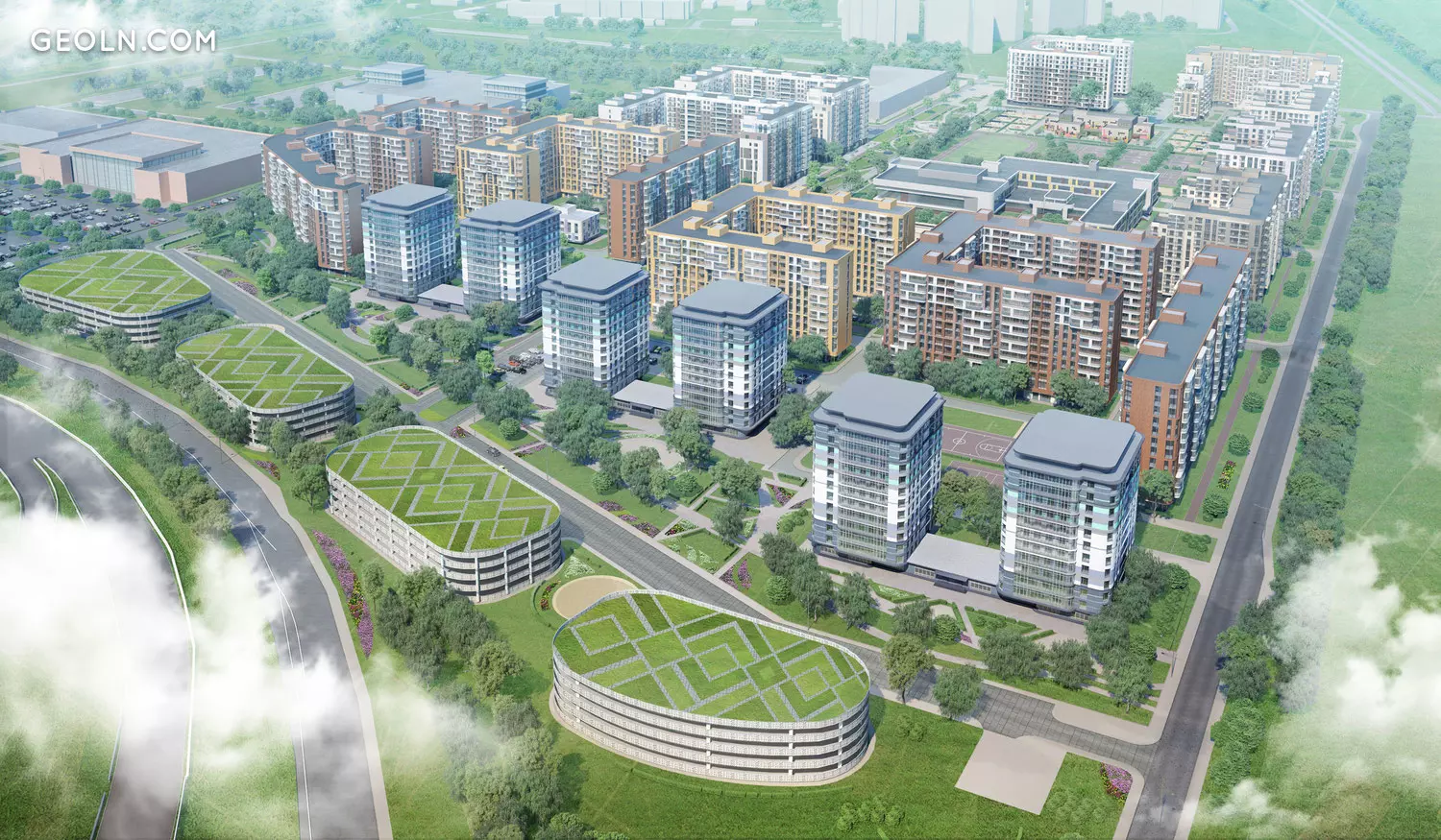 该综合大楼由二十多座采用整体框架技术建造的房屋组成。建筑物的高度从七层到十二层不等,工作分多个阶段进行-在施工的每个阶段均使用经过认证的优质材料。