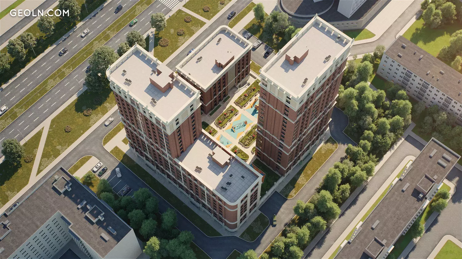 该建筑群由三栋8-23层的多层公寓组成。在施工过程中,使用了现代材料。建筑物的外墙通过通风的外墙保护免受大气的影响,从而确保了公寓全年的稳定生活条件。综合楼建设中使用的技术使公寓所有者可以轻松更改公寓的布局。