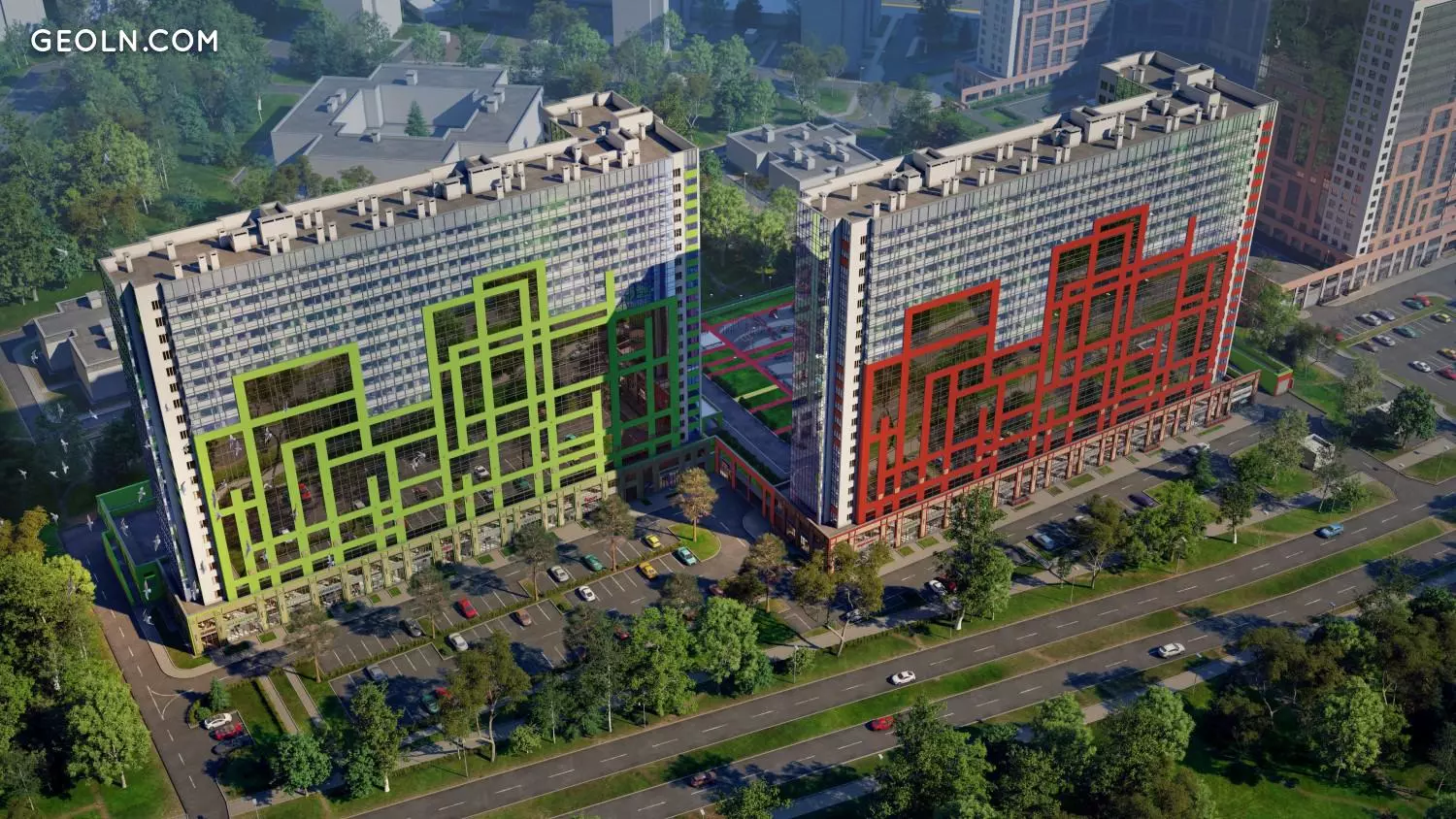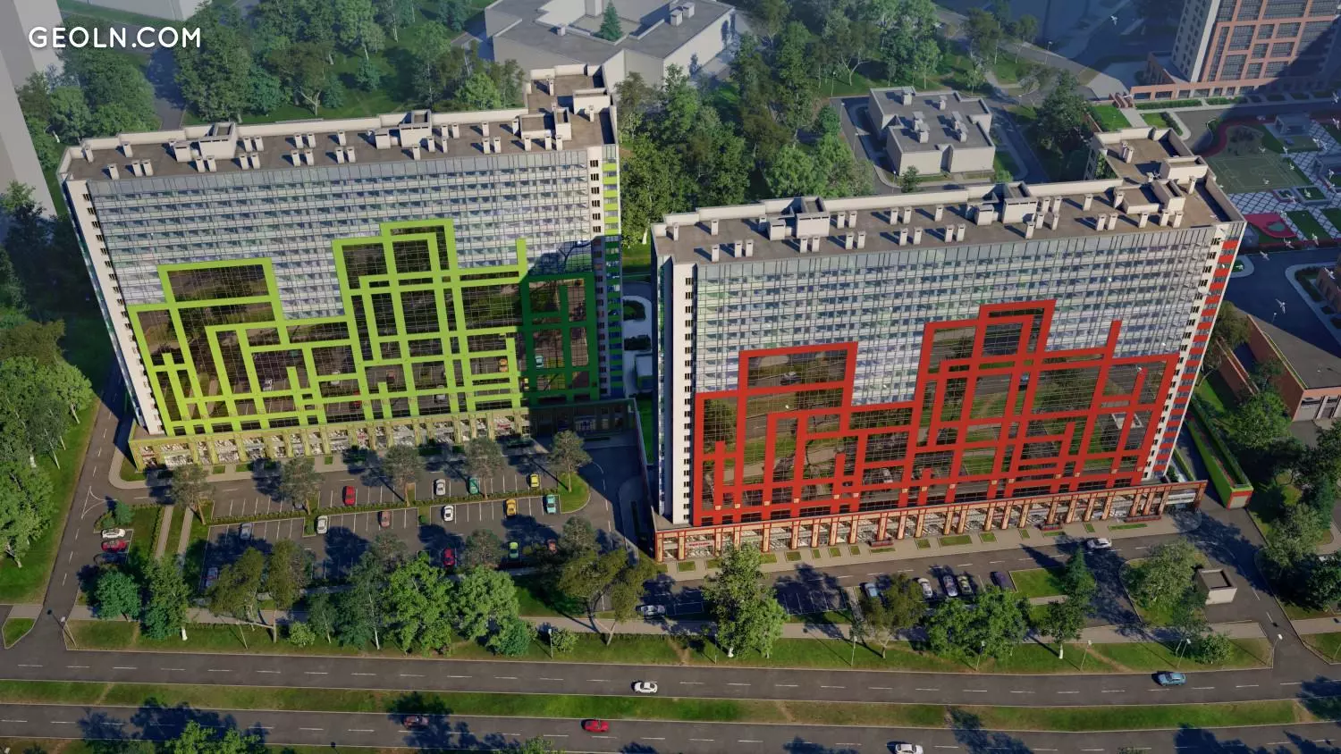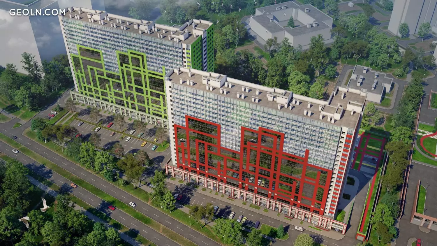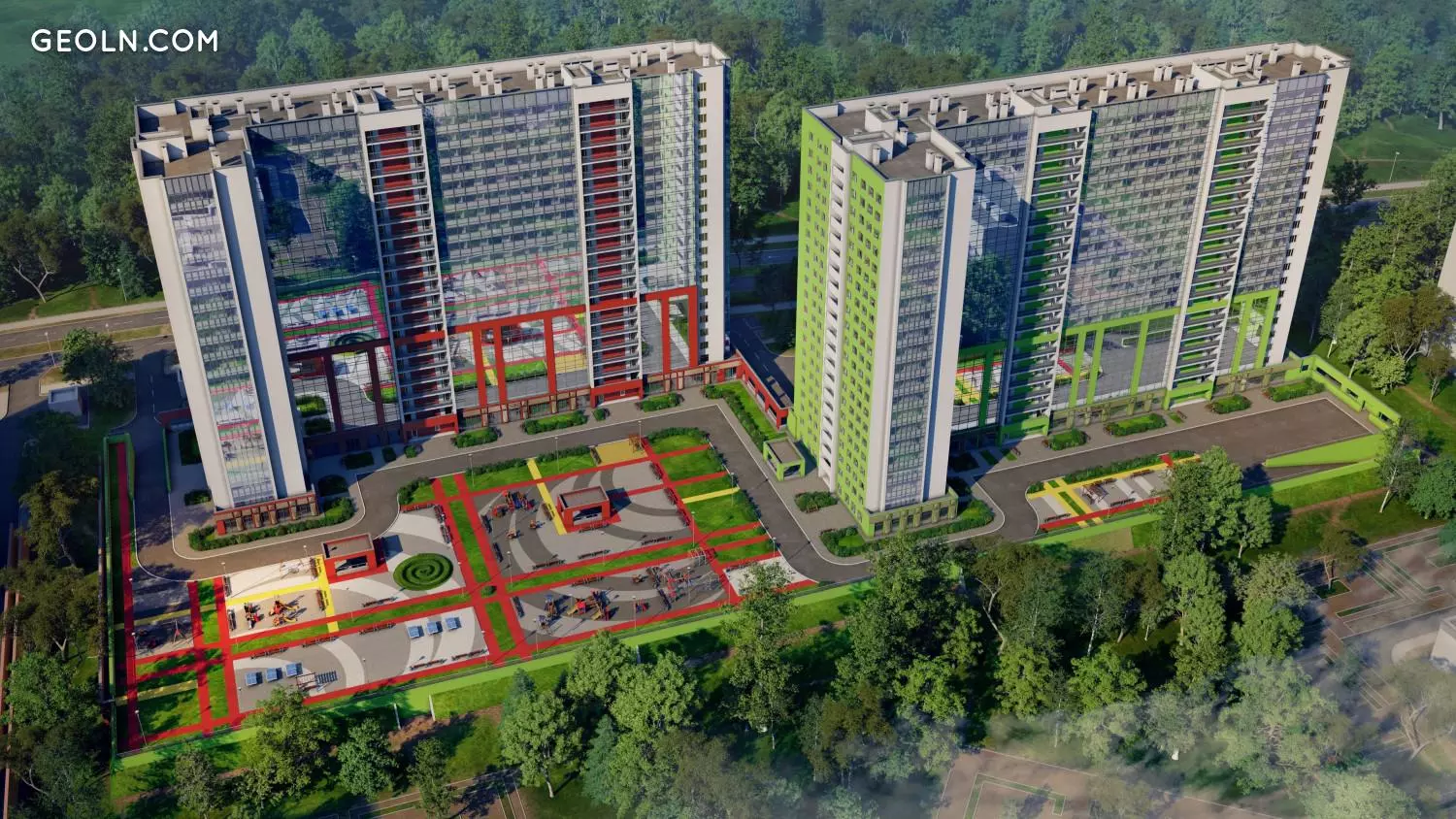 在河岸住宅区“几何”对面,有一个风景优美的森林公园“ Okkervil”,该公园具有户外休闲的所有条件。