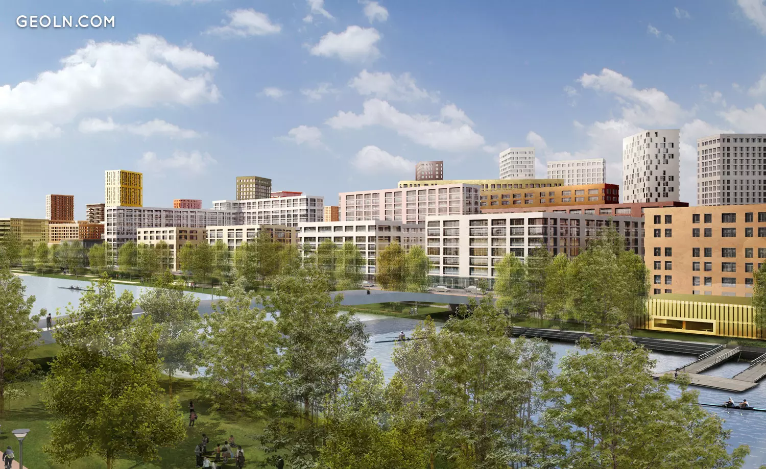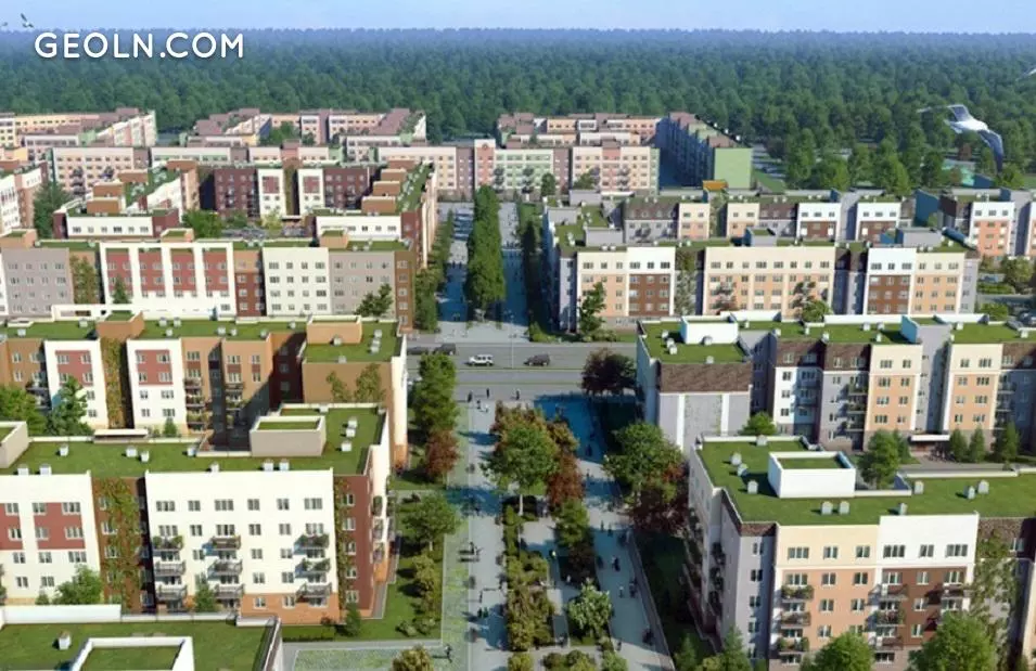 领土的发展分为四个阶段。总共将建造36座不同高度的房屋。开发计划于2017年第四季度完成。第一阶段于2014年第四季度完成。在第一阶段中,建造了14座5层高的建筑,其中有2000多个工作室,一室,两室和三室经济舱公寓,以斯堪的纳维亚风格装饰,并使用现代材料进行保温。
