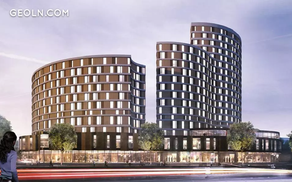 新建筑以螺旋状排列的4座不同寻常的建筑为代表。外墙的时尚照明很好地强调了大楼的现代外观。