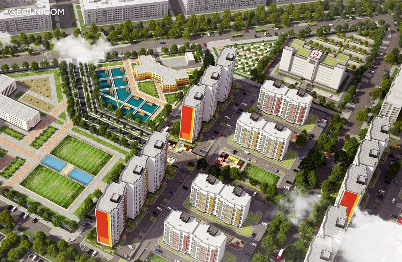 在该综合体的领土上正在进行改善工程,正在建立一个私人公园,种植灌木和花坛。根据开发计划,将要在其上建造新建筑物的整个场地分为四个独立的封闭庭院。地下停车场设有自动门,运动场,自行车道和9个儿童游乐场。