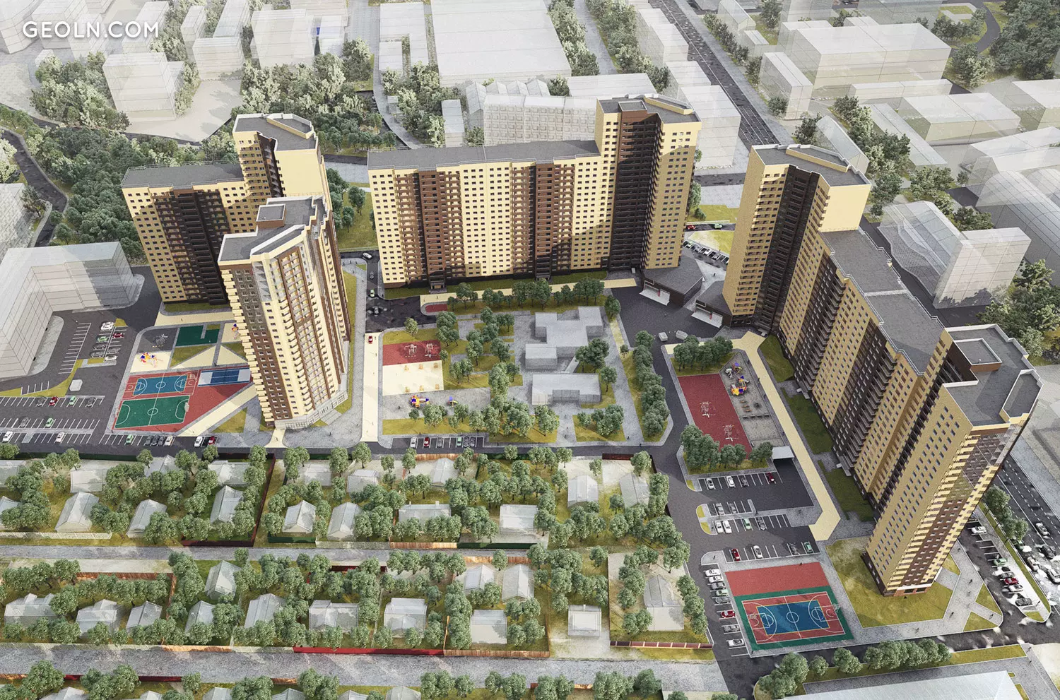 住宅综合楼由3层不同楼层的住宅建筑组成,这些建筑的楼层分别为19层和25层,并具有内置和附属的非住宅用房,可在底层使用。设想在建筑物范围内建造地下停车场。