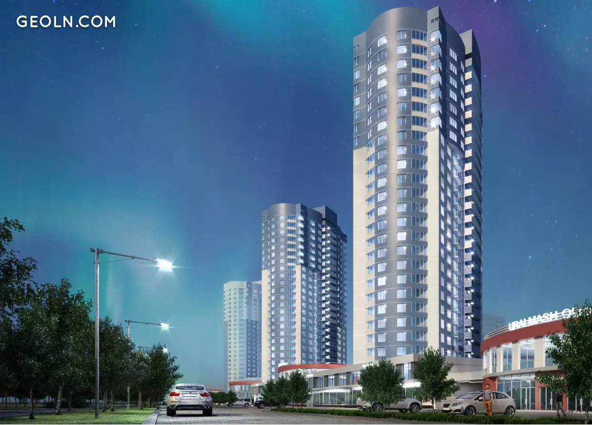 住宅区“北极光”-四栋拥有自己的基础设施的商务级建筑物和布局各异的宽敞公寓。