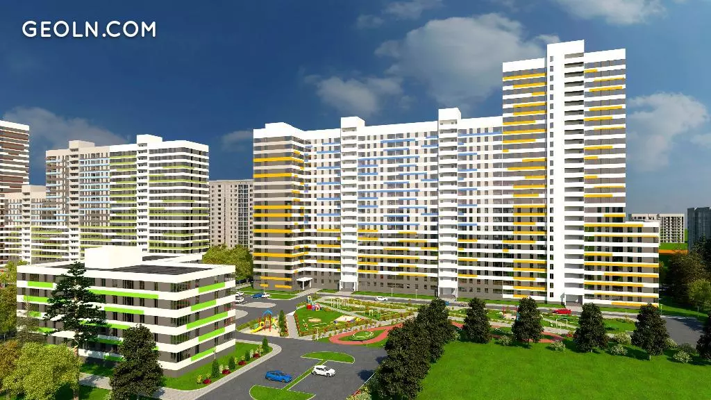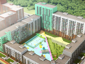 庭院将配备儿童游乐场,带步道的休闲区和带户外运动器材的运动场。正在安装室外照明设备,铺设人行道和沥青车道。种植树木和灌木,割破草坪。