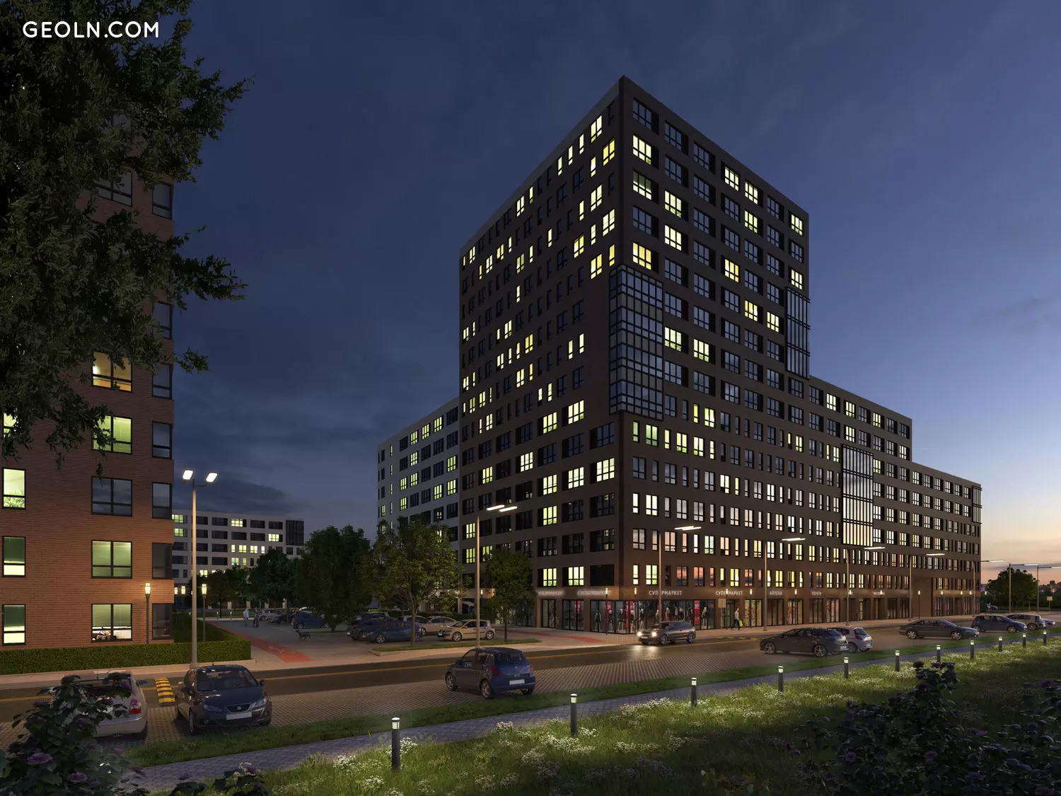 在院子里,设有儿童游戏游乐场,自行车道,具有防伤表面的运动场,并铺设了铺有铺路石的人行道。建筑群的领土被现代化的街道照明设备所照亮,该项目为具有视频监视系统的新建筑物提供了设备,并提供了保安服务。
