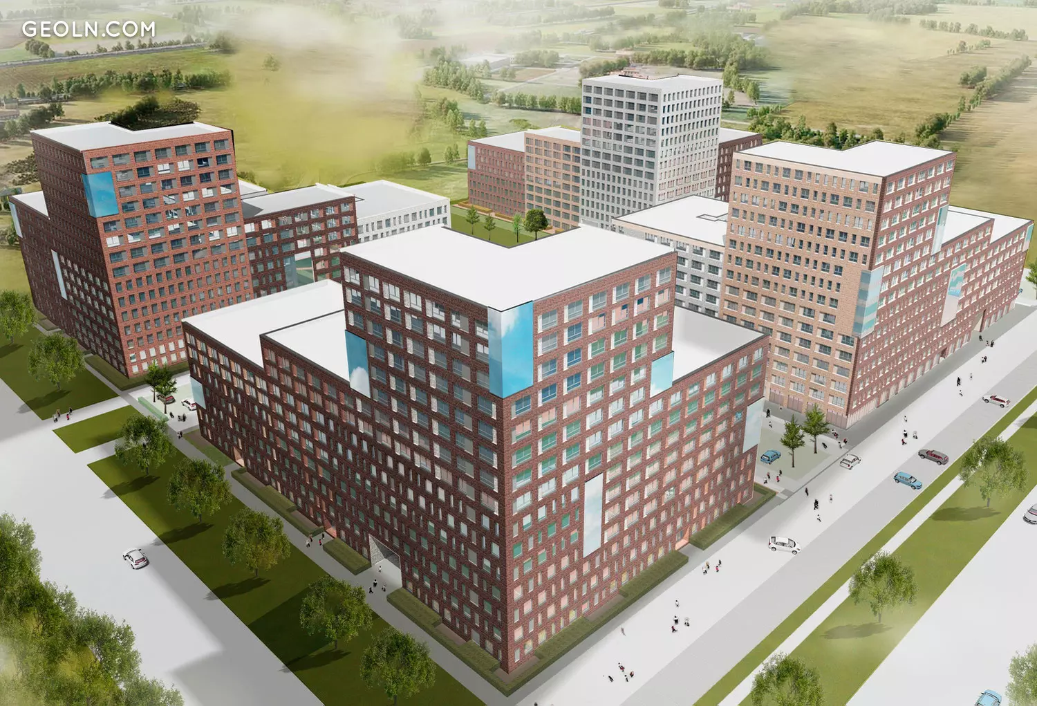 新建筑由五层至十五层高的多层多层建筑组成,这些建筑以封闭的矩形形式位于建筑工地上,庭院由外界封闭。
