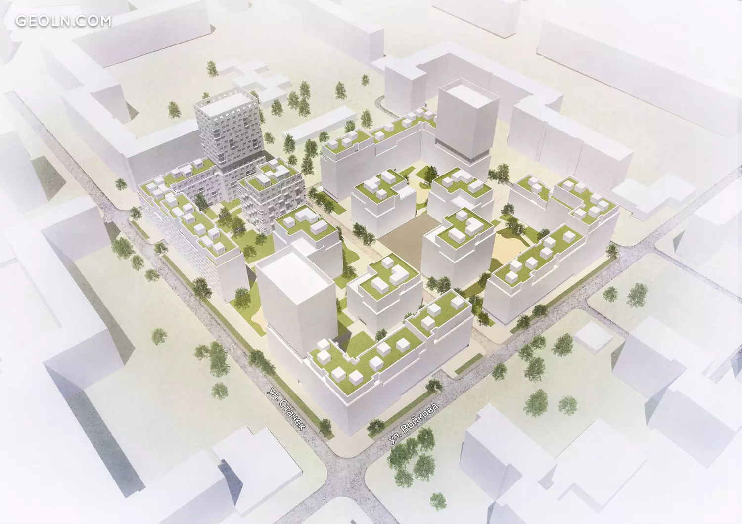 该季度的美化项目将庭院,游戏和运动区连接到一个空间中。中央步行街穿过该街区,在两侧收集了分散的绿色区域。城市别墅被树木和绿色植物所环绕-该季度的这一部分变得更加私密和安静。 “北区”的主要公共场所将是广场广场,居民和公民均可进入。