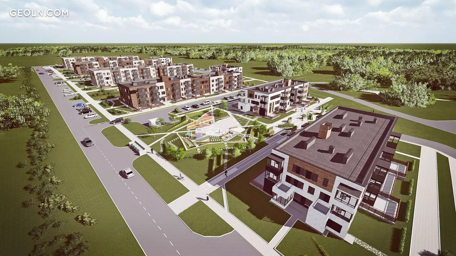 住宅区“ Baltym-Park”是一座新型的低层公寓楼,采用环保耐用的材料建造。