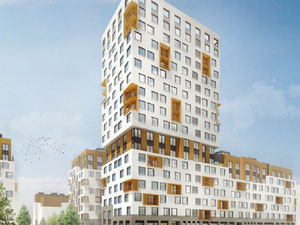 开发人员使用节能技术,这对住房维护成本和舒适水平产生了积极影响。外墙用矿棉板隔热,饰以红色饰面砖和装饰石膏。