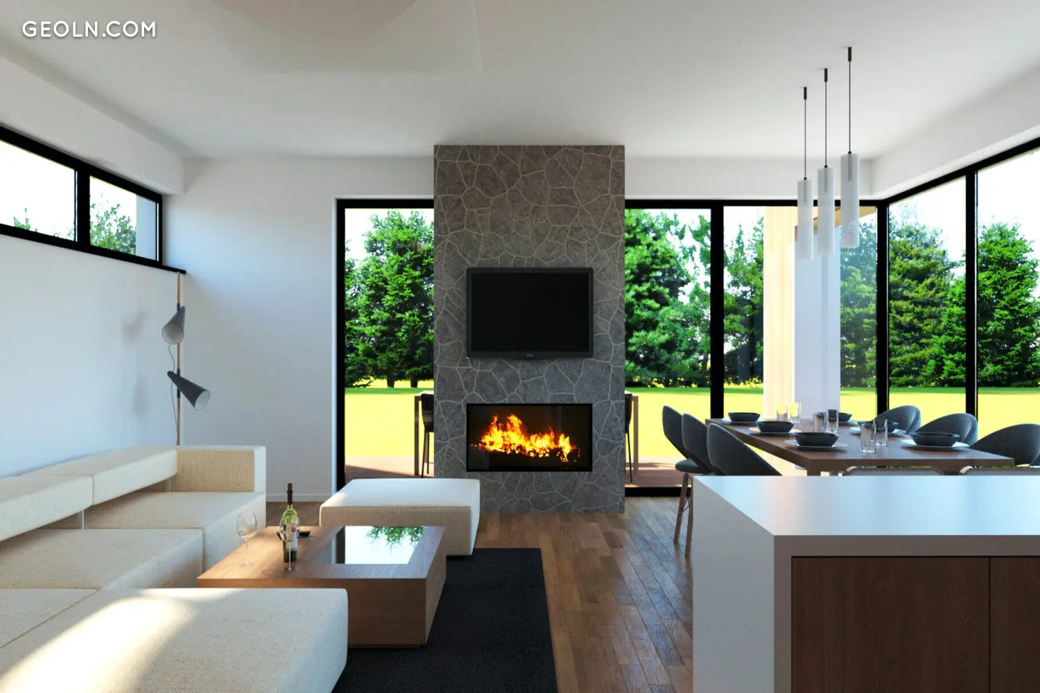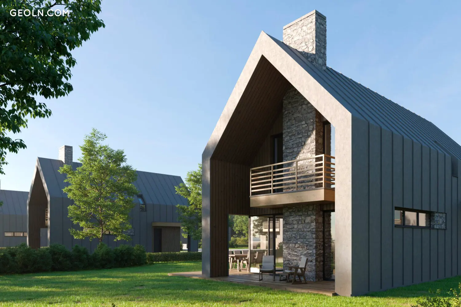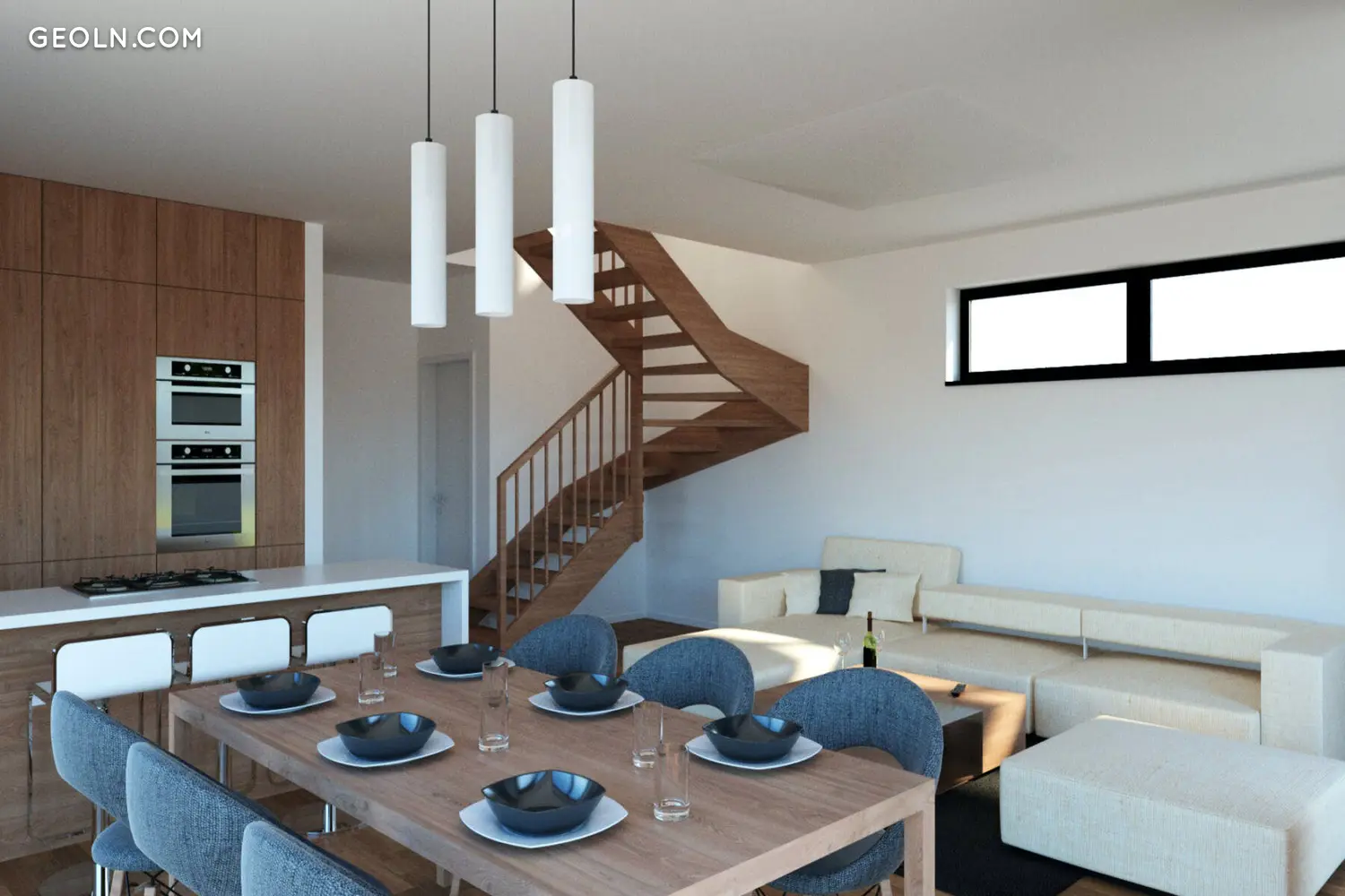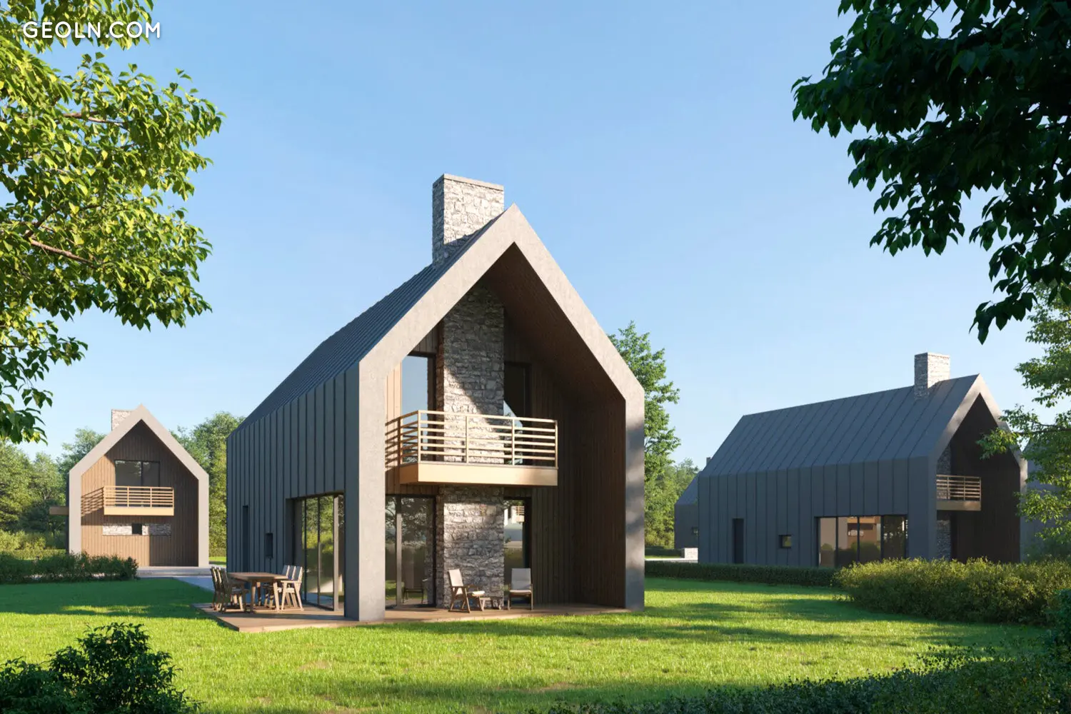 根据项目提供的别墅分为两层。 在底楼,有一个带壁炉,小厨房和饭厅的起居区。 楼上是一个带三间卧室的夜区。 每栋别墅都有一个设计好的室外露台,您可以在这里与家人和朋友一起度过愉快的时光。