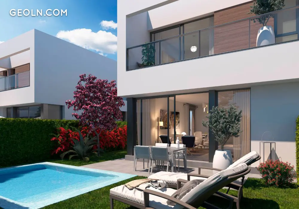 在维吉根阿吉拉(Virgen delÁguila)地区独家推广30套半独立式住宅。 3卧室和4卧室房屋,带有私人前后花园,车库和社区游泳池。
