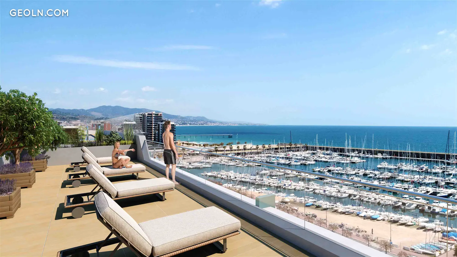 在Badalona码头的前面,在海滨,享有绝佳的视野和方向。