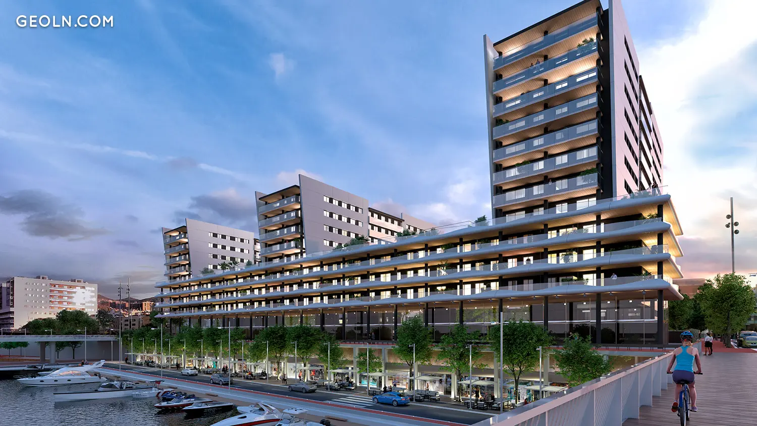 代表项目各个方面的宽敞性在大露台中扮演着特殊的角色,其中,第一层的私人花园和每栋建筑顶部的全景日光浴室脱颖而出。