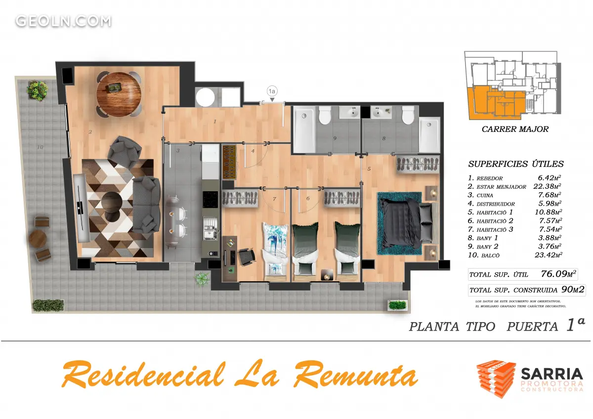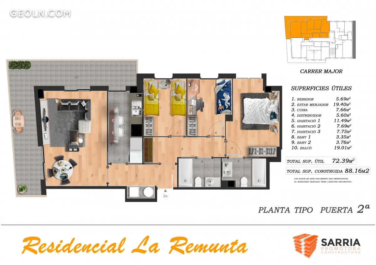 住宅综合体,拥有17栋房屋,设计风格现代实用,装修精良。 六楼是两座带大露台并享有全景的顶层公寓。 所有房屋均在同一建筑物内设有储藏室和停车位。 选择建筑物的位置时要考虑到生活质量以及日常生活的需要,以及建筑物与市政市场,图书馆,市政厅或市政体育中心之间的距离。 它拥有多家商店,药店,一家超市,多家商店...周围,此外还可以方便地通过Ronda de Dalt到达巴塞罗那市。