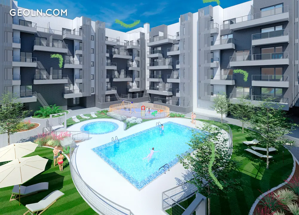 “住宅联盟”促销活动包括83栋房屋,其中2卧室和3卧室分布在5层,另外一层都设有带车库和储藏室的露台。 促销将有一个儿童和成人游泳池,花园区,游乐场和社区室。”