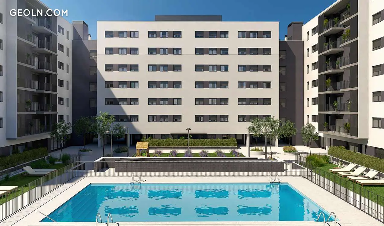 CélereMontecillos的新建筑由110间房屋组成,其中包括2卧室和3卧室类型,包括底层和顶层公寓,所有这些都带有露台,车库空间和储藏室,位于一个私人城市化区,有绿色区域和不同的休闲场所。